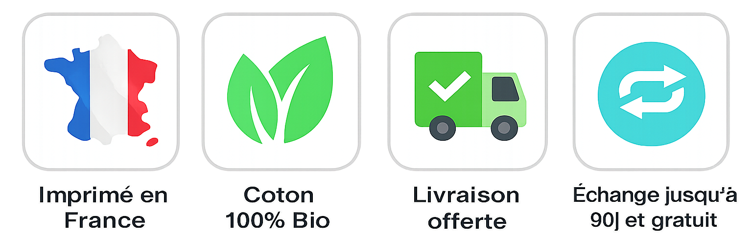 Chaque produit étant imprimé à la main, les délais peuvent varier selon la charge de travail à l'atelier. Pour plus de transparence, nous les mesurons en temps réel.
